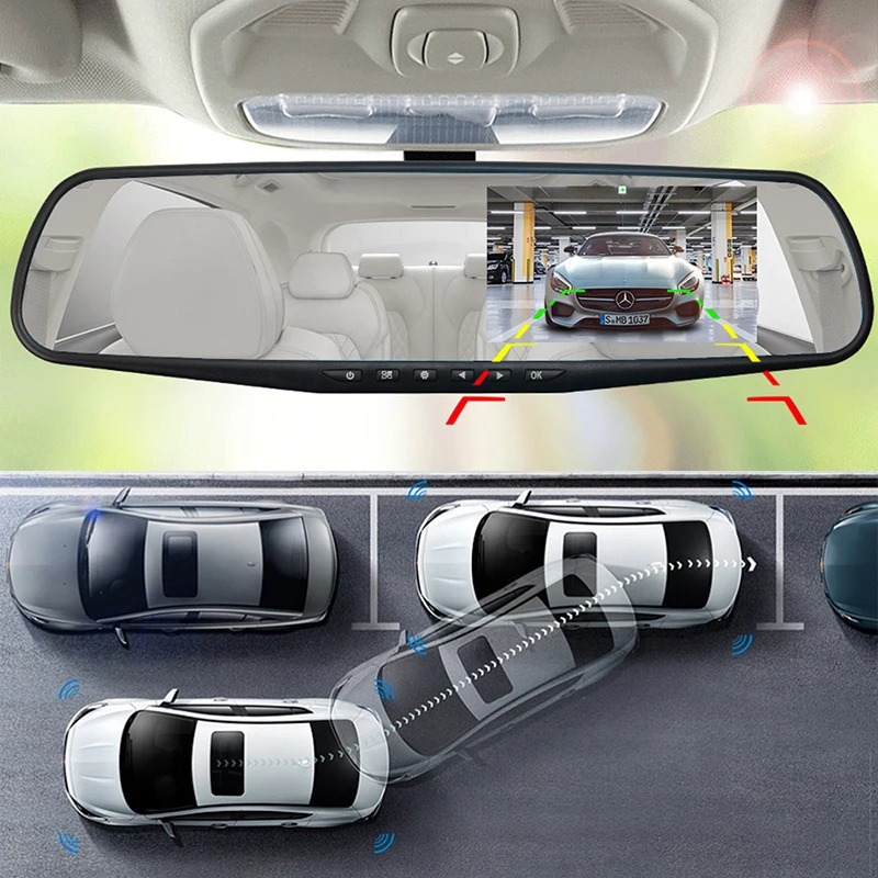 4.3'' Car DVR Rearview Mirror with 2 Cameras Dash Cam White mirror 1080P Auto Video Registrator Rec
